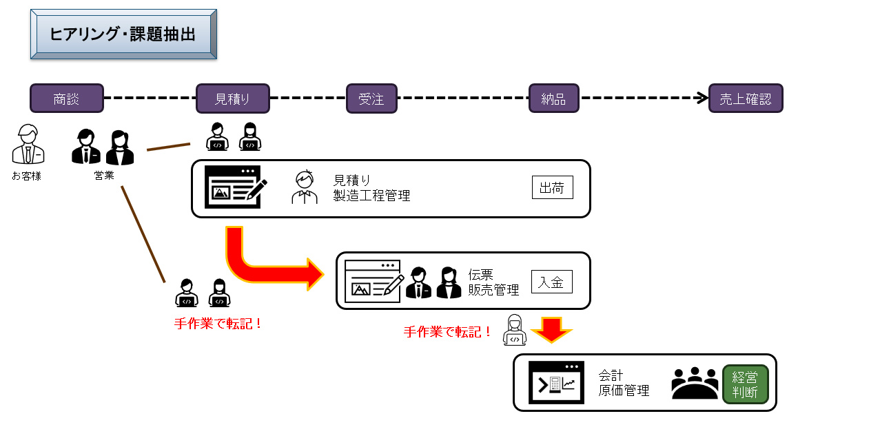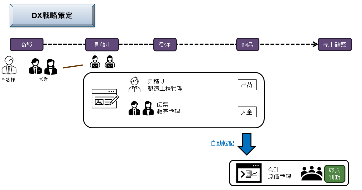 ①見積り・製造工程管理システムと伝票・販売管理システムを統合